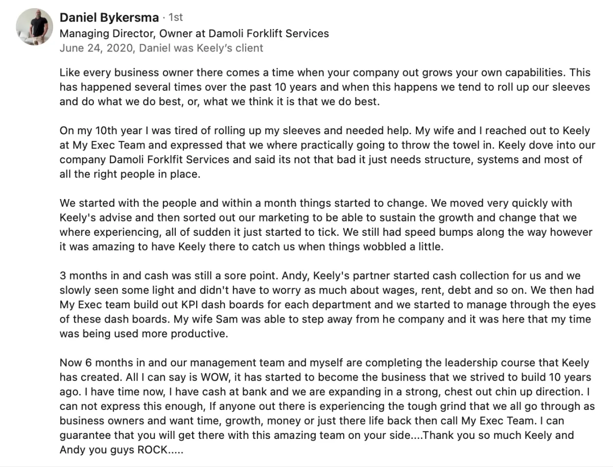 Prior to Liinchpin, Keely also worked with multiple 7 & 8 figure companies - in construction, training, property and ecommerce - and has received business awards and high recognition in sales, structure and leadership.